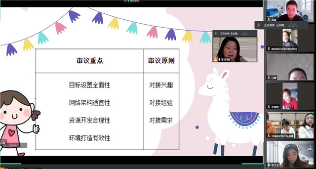 随着幼儿园课程建设的不断发展,主题审议在幼儿园课程中也是必不可少的,主题前审议旨在通过集体智慧对主题中的问题进行商议并作出选择和决策,对主题思路、主题内容等进行了重新架构与设计,使蓝本中的主题课程基于儿童经验和视角,提升全体教师的课程领导力。虽然疫情原因宅家,但教师们停课不停研,2021年11月16日上午,四园区小中大年级组齐聚腾讯会议房间,围绕第四个主题开展线上主题前审议。 前期准备 提升效度 龙幼课程审议一直以来都前有独立思考,中有教研碰撞,后有专业引领,本次的前审议也不例外。疫情宅家更为教师们提供了思考与探究的时间、空间。每个园区、每个年段的主题负责人都将本次审议主题框架下放,班级教师根据对自我剖析以及对资源的调整利用,在班本基础上形成了园区内的计划初稿。同时主题负责人也利用问卷星对四园区不同年段幼儿进行数据统计,利用大数据进行分析,为主题开展创设有力数据支持。经过前期准备,每个参与者都有备而来,在有限的研讨时间内提升研讨效度,让活动有质有量。 云端探讨 集思广益 16日上午,四园区小中大年级组教师齐聚腾讯会议,在不同房间开始了主题前审议。本次审议重点围绕目标设置全面性、网络架构适宜性、资源开发合理性以及环境打造有效性进行。讨论的同时,教师们对接幼儿兴趣、幼儿经验、幼儿需求,小班以《玩具总动员》、中班以《龙虎娃的冬日之约》、大班以《生龙活虎来运动》为切入点,在课程资源、区域游戏、主题性游戏等方面进行了激烈探讨。活动中,大家关注幼儿的年龄需求,既关注本次主题开展的大走向,也能根据本年段幼儿的特点进行个性化的思考,努力使主题课程的实施成为“基于经验-拓展经验-提升经验”的动态过程。 总结提升 指引方向 船的前行必须有方向的指引才能到达预定的彼岸。课程的开展也同样要把握好大的方向。在本次云上会议中,每个年段的审议现场都会有课程研训中心行政参与其中把脉。活动最后,吴紫阳、宋一叶副园长以及顾科望、朱宏萍、汪惠琴主任分别进行了总结提升,希望大家基于对课程的理解,在传承基础上继续传扬,做实做精,让课程的开展成为儿童最喜欢的模样。 疫情防控,龙幼人一直在努力;停课宅家,龙幼人继续研学。前瞻谋划、在线思考,龙幼人会持续向前,为儿童的发展开辟蓝天! 撰稿:王志薇 摄影:各园区教师 审核:潘雯雯 |