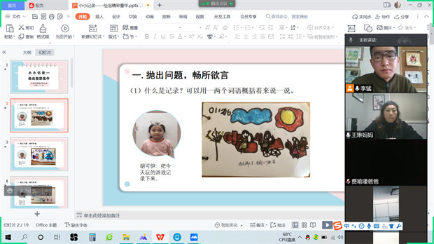 秋天的故事,还未来得及回味,初冬的脚步便已走近。带着我们共同的期望,龙虎塘街道中心幼儿园小班、大班年级组开展了本学期第一次互动式家长会。家长们线上出谋划策研讨,线下互动游戏欢笑,与教师们一起去感受、去思考,共同期待幼儿美好的未来。 会议主题,紧扣所需 互动式家长会,对于家长来说是比较期待的有效沟通方式。由于疫情原因,家长们没有机会进入班级参与孩子生活游戏中,他们迫切希望通过互动式家长会了解幼儿在园情况。于是,根据幼儿近期发展出现的问题、家长们的育儿需要,各班制定了互动式家长会的主题。小班结合生活日常能力培养,制定会议主题《学会穿衣》、《爱,一场得体的退出》、《快乐用餐三部曲》等;大班注重培养幼儿能力发展,制定会议主题《小小记录员》、《让孩子享受阅读》、《我眼中的幼儿园课程》等。科学的教育观在一次次的互动中形成,共同剖析原因、梳理经验,达成新的共识。 班级环境,趣味呈现 精致的签到台、独特的签到方式、整洁有序的教室,让忙碌了一天的家长们放松了心情,同时也感受到了老师们的用心和细致。富有童趣的作品呈现,略显稚嫩的表征内容,幼儿在园生活的痕迹处处可见。舒缓的音乐,俏皮可爱的生活视频展示,让等待的时光变得充实而温暖。家长们放下手头繁重的工作,用眼去看孩子的世界,用心去感受孩子的世界,和老师积极互动,畅所欲言。 畅谈困惑,经验碰撞 “班级区域材料需要家长共同助力,你们有哪些好建议?孩子不会脱衣服,你有什么好办法?小时候的幼儿园生活还记得吗?你眼中的幼儿园班本课程是怎样的?当你观察到幼儿的行为时,你是如何发现并支持幼儿真实需求的呢?孩子吃饭挑食,你有什么好点子呢?”……来自不同家庭的成员们,在畅聊中逐渐收获共识,沟通中互生同感。随着话题的深入,家长们频频点头,纷纷反思自己的教育方式和与幼儿互动的方式是否适宜。一条条切实可行的育儿金点子在讨论中得到了梳理,为了相同的目标共成长。 理解孩子、正面沟通,家长是孩子成长路上的陪伴者,教师是幼儿学习活动的支持者,合作者,引导者。龙幼将继续通过各类形式,请家长走进教室,关注教育;相约线上,参与管理;走近幼儿,倾听心声。同心执手,见证成长的小幸运。 撰稿:刘海英 摄影:各班老师 审核:潘雯雯 |