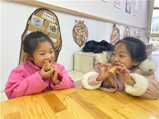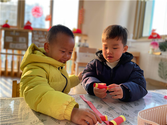 日月如梭,光阴似箭,当小树增加了一个年轮,时光老人领着我们又敲响了时间的大门。牛年悄然而去,虎年款款而来。龙虎塘街道中心幼儿园中班年级组将乐享元旦活动与《龙虎娃的冬日之约》主题相结合,开展了一系列丰富多彩的迎新活动,开启新年新篇章的序幕! 做一做,新年环境共打造 元旦是新年的开始,教室里的环境当然也要焕然一新。新年可以怎么装扮呢?为了满足孩子们装扮新年的热情,许多班级以手工制作为主线,在与孩子们讨论调整的过程中,引导他们通过剪、贴、卷、画等方法,将剪纸窗花、灯笼鞭炮、创意老虎等作品在原有经验的基础上创新升级。教师还鼓励孩子们将作品与小伙伴们分享,用画一画的方式表达祝福,潜移默化地培养孩子们交往能力。同时,孩子们还用自己制作的作品进行装扮,用灵动的指尖让教室和校园里洋溢着红红火火的新年味。 试一试,新年美食齐分享 元旦是阳历的新年,随着孩子们对元旦习俗的深入了解,大家越发感受到了传统文化的魅力。他们对传统的民间美食产生了浓厚的兴趣。于是,孩子们与老师一起走进宝贝厨房,饺子、春卷……各类美食呼之欲出。大家分工合作,忙得不亦乐乎,在与食材的亲密接触中,大家享受新年美食带来的饕餮盛宴。 逛一逛,新春集市送祝福 独乐乐不如众乐乐,为了分享新年的喜悦,在教师的引导下,孩子们开启了“新春集市会”串班活动。大家对民间游戏的种类和玩法提前调查,通过投票方式选出了自己感兴趣的游戏:丢沙包、跳房子、打弹珠、投壶、拔河……每班组织两到三个项目,根据实际情况在教室、音体室、宝贝厨房等多场所布置好游戏摊位,由孩子们自己或者自由组合进行游戏体验。前期准备中,孩子们兴高采烈地自主寻找游玩伙伴、设计计划路线。活动当天,赶集活动开始啦!大家带着游戏卡与伙伴们体验自己喜欢的项目。他们勇于参与和表现自己,不仅兑换了游戏贴花,还相互送上美好的新年祝福呢! 许一份美好的愿望,送一份美妙的祝福。新年活动在龙娃虎妞们的积极参与和体验中圆满落幕,孩子们不仅收获了快乐和成长,也播种了满满的温暖与崭新的希望。2022已徐徐开启,期待更多的美好与快乐如约而至! 撰稿:孙甜甜 摄影:各园区教师 审核:潘雯雯
