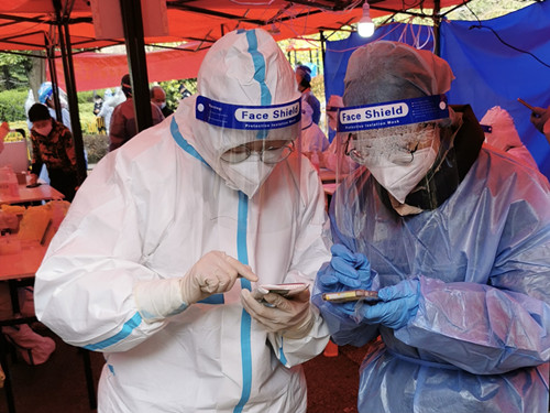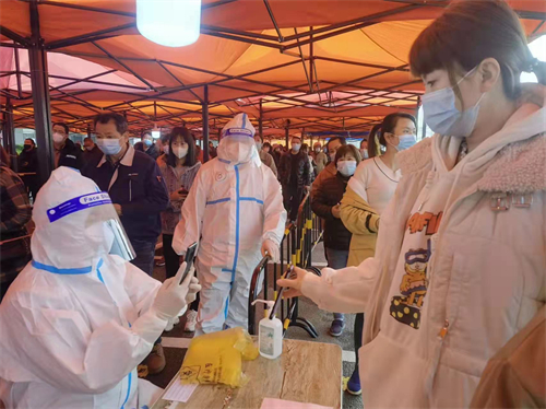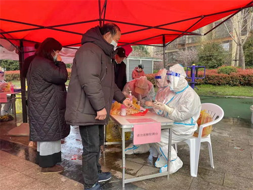 刘宏 龙虎塘街道建设局副局长 他负责的片区为美林湖、工地,因人数较多,必须加强疫情防控、封闭管理。他合理安排人员,确保现场不因检测聚集导致风险提高,全员100%成5次核酸,为战胜疫情守好每一道防线。