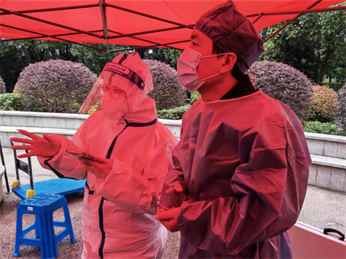 陶刚 龙虎塘街道玲珑社区民兵团成员 作为龙虎塘街道民兵团的一员的他,积极响应社区号召跻身于志愿者工作中。他统筹安排小组成员的点位与分工,积极维护核酸现场秩序,热心帮助民众解决检测困难。