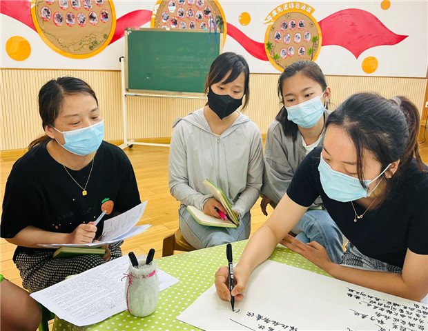 如何在集体教学活动中加强幼小衔接,让幼儿愉快地进入小学,自信独立的面对小学生活,成为我们亟待解决的困惑。2022年6月13日下午,龙幼四园区全体教师齐聚玲珑园区,以“市区两级年级组长赛课”为契机,锁定综合活动《课间十分钟》与数学《找位置》来进行不同维度的共研,从而重新审视集体活动与幼小衔接课程之间的联系与融合。 走进课堂,有效互动显精彩 活动伊始,与会老师分别进入玲珑园区会议室和多功能室进行分会场教学观摩及研讨。会场一观摩由汪惠琴老师执教综合活动《课间十分钟》,会场二观摩由柯小进老师执教大班数学《找位置》。在两节集体教学活动中,孩子们通过情境性的活动、游戏化的互动、可操作的学习充分获得经验和方法。两位参赛教师聚焦大班幼儿年段特点,向大家呈现了“有趣味、有层次、有思维”的教学活动现场。 唇枪舌剑,专题教研寻新标 有效提问与回应是一种外化的行为,它反映了教师的教育观念。课堂观摩结束后,教师们根据话题“结合课堂评价标准,围绕有效提问与回应谈该活动是如何落实《幼小衔接入学指导意见》中的四大准备?有何建议?”展开互动交流。大家以小组形式进行讨论后,各小组派1名代表结合海报内容,紧扣教研话题各抒己见,积极分享着自己的想法。 品质追求,总结提升领新航 最后,吴紫阳副园长与宋一叶副园长围绕“师生的有效互动”进行了点评和提升。吴紫阳副园长首先为本次教研场域中所有教师们的思辨意识和热烈的教研现场点赞,并精心梳理了几种教师在集体教学活动中常用的提问与回应的方式,希望教师在集体活动中的提问,能够紧扣教学目标,关联幼儿年段,促就课堂向更高质量发展。宋一叶副园长则围绕师生有效互动的关键点,以“推、拉、提、引”四个关键词,为大家做经验提升。 通过此次教研活动,全体教师更加直观而深刻地理解了“集体活动中教师的有效提问和回应策略”。我们也将进一步梳理总结教学经验并持续优化,不断深化理论学习与实践应用。 撰稿:李宇梦 摄影:汪曙、武亚男 审核:潘雯雯 |