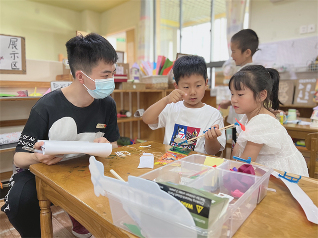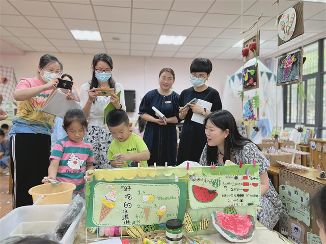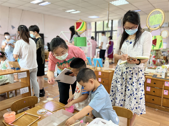 2022年6月15日,龙幼全体教学行政、童心解读观察核心组成员以及跟岗团的园长老师们,一起走进本月集团调研的园所腾龙园区,聚焦各班级的建构区及“STEM项目”,在游戏、教研现场中问诊把脉,围绕“支持性游戏环境中学习元素与材料支持”,关注STEM视角下的幼儿建构课程生长,共同剖析探讨,在真问题、真研究中形成教师自身的攻坚“项目”,实现园区项目的攻坚力及集团教研的品质力。 现场开放 遇见儿童 走进观摩现场,孩子们的活动正在火热开展,有STEM区的灵动呈现,益智区的思维碰撞,有表演区的火辣舞蹈,还有美工区的心灵交汇……观摩老师们在旁边也慢慢被孩子们的情绪感染,跟随孩子们的步伐投入进一个个有趣的区角,从中发现孩子们的闪光点,去发现每一位儿童深度学习的精彩瞬间! 交流提升 相互学习 有了现场观摩的依据,小伙伴们的现场教研不再只有空泛的表面说教,更有说服力,更具有可操作性,也真切地发现了很多问题。有问题才有动力,大家根据我们现场发现的诸多问题逐一分析、指导,老师们也会根据自己的教学经验交流、讨论自己的想法,共同解决现场问题,与会的每一位老师都有着不同的见解和收获,受益匪浅。 引领提升 共话期望 活动进行到尾声,我们的中层行政对照建构区、STEM环境打造评估表以及上几轮园区调研反馈表给予大家很多实质性的建议。张静主任指出:本次调研过程中让我们看见了STEM班级中这些特质,材料投放巧分类、儿童经验巧呈现、深度学习巧推进等,我们可以时刻对照《STEM评估量表》,陪伴孩子一起去收集多元材料,再投放到区域游戏中,寻找更多成长的空间。吴紫阳副园长首先高度肯定了腾龙园区师幼的日常状态,给大家呈现了生动的活动现场;接着结合建构区的环创设置与阅读区的听说游戏,给予了很多有建设性的意见,支架的投放还可以再大胆、多元一些,辅助材料、自然物等应结合幼儿年段特征,投放后及时跟进等等;最后在科学区与STEM区域的本质性区别上为大家指明了后期的方向:结合科探区,创设思维支架是非常必要的。跟岗团的代表们也随后畅谈了自己的跟岗感受:适宜的环境,多元的材料,促进儿童主动的学习。我们还要更多地去考虑投放的材料是否能看到儿童,因为看得见儿童的材料才是适宜的材料。透过孩子与材料的互动,我们就能看见深度学习的可能性! 玩转“区”角,“域”见美好。每一次区域活动都离不开老师的观察、指导,每一次游戏都充满孩子们的欢声笑语,只有在一次次有目的、有计划的观察、教研中,我们才可以不断挖掘孩子的潜能,发现潜在的问题,为下一次活动做好准备,与孩子们在活动中真正遇见美好! 撰稿:谢秋欢 摄影:蔡小丽 审核:潘雯雯 |