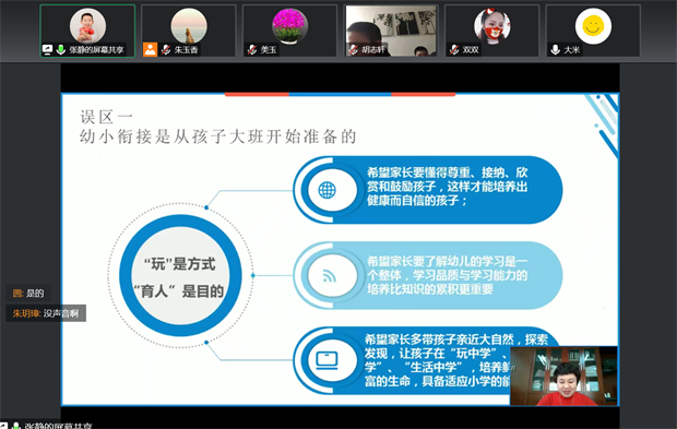 家庭教育伴随并影响人的一生,对一个人的成长至关重要,为了帮助家长解决实际困惑,形成科学的教育观,构建和谐的亲子关系,龙虎塘街道幼教集团 十二月“家长云学堂”活动如期而至。期待通过园家携手,助力孩子健康成长! 活动预热 火热报名 本月讲座继续以“家长云学堂”的形式在线上开展。活动前期,根据年龄特点和家长的实际内容需求,主讲人确定主题。我园利用微信公众号宣传本次活动,向家长公布云课堂开展的主题与时间,家长们纷纷以QQ群接龙的方式火热报名。 专场讲座 亲密沟通 本次活动分三场开展,每周五晚准时相约线上。小班专场,谢秋欢组长以《有效沟通,在尊重与接纳中深入对话》为题。她提倡共情理解正面教育,在一张张生动的照片,一个个鲜活的案例中,为家长支招,解决亲子沟通中的问题。好的父母,应当跟孩子成为盟友,建构良好的亲子关系。 沟通是门学问,和孩子沟通尤是如此。爱需要技巧和练习,鼓励家长左手规矩右手爱,做一位会讲话的家长。 中班专场,柯小进组长以《做心平气和的家长》为主题为大家你支招,在识别、体察、接纳、疏解中,控制情绪,学做心平气和的家长,让家庭更温暖。父母的情绪是影响孩子能否成才的直接因素,能够管理好自己的情绪是合格父母的共性,也是每一位家长一辈子必须具备的能力。结合生动的案例,向家长们讲述了舒缓情绪的小技巧,给了与会家长很多切实可行的建议。 大班专场,特别邀请常州市教育局基教处副处长、国家二级心理咨询师、江苏省优秀家庭教育指导者、家庭教育高级指导师、常州市幼教学科带头人孙静老师,她以《做好幼小衔接准备----好习惯成就好衔接》为题开展专项讲座。她列举出家长对幼小衔接的几个误区,并提出几点建议,让孩子了解小学生活,培养孩子几种良好习惯,即生活自理能力、倾听、阅读、任务意识等,分享几种亲子游戏,在游戏中培养大班幼儿的良好习惯,为上小学做好准备。相信孩子,用长远发展的眼光来教育孩子,为孩子的发展做好铺垫。 会学善用 静待成长 三场专题讲座,从有效沟通、控制情绪、幼小衔接,不同的方面切入,给予家长满满的能量输入。期待他们潜心学习,并学以致用,形成科学有效的教育观。 小班专场 盘龙新园 星星4班 王烁皓家长:沟通是门艺术活,使用技巧与孩子沟通和交流,有效缓解沟通不畅的问题,多给孩子表达的机会,同时对孩子的意见和建议多给予一定的肯定,鼓励孩子有自己的想法,多做有效沟通。 腾龙园区 星星2班柳宏烨家长:学会倾听,和孩子要有共情,站在孩子的角度思考,拉近与孩子的距离,让孩子更加愿意和家长沟通。 中班专场 玲珑园区月亮2班 周沫言家长:听着老师的话,联想到自己在教育孩子方面的种种,深感羞愧和遗憾,做的有些不到位,后续会改变与孩子的相处模式,家长的情绪波动对这个时期的孩子影响很大,还得讲究方式方法,耐心沟通找出平衡的相处模式! 玲珑园区月亮4班 迭潇潇家长 :跟女儿一起看的,女儿非常认同老师的讲解,结束了还跟我讨论,感觉小朋友一下子就懂事了,赞! 大班专场 玲珑园区太阳7班方梓涵家长:了解到幼小衔接家长和孩子着重准备心理上的过度,生活习惯作息时间的改变。 腾龙园区 太阳2班 张皓然家长:幼儿园和小学区别还是很大的,要培养孩子的专注力,语言表达能力,动手能力。 让我们静下心来,倾听孩子的声音,和孩子一同成长。龙虎塘街道幼教集团也将继续加强家庭科学养育指导,园家携手并肩,为孩子们的健康成长保驾护航。 撰写:刘海英 摄像:各班老师 审核:张静 |