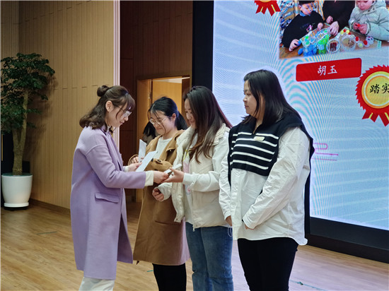 春天,是一首意境清新的诗,是一幅绚烂多彩的画。新春二月,不仅是孩子们新的起跑线,也是教师播种的新开始,更是耕耘的新延续。2023年3月6日,龙虎塘街道中心幼儿园全体教职工开展2月工作盘点活动,共同回首成长与收获。 篇章一 回望初春 感点滴成长 本次的月盘点工作由王志薇组长主持。她分别从“ 学校管理与团队打造、幼儿成长与教师发展、资源保障与后勤服务”三大版块,带领龙幼人回顾2月生活。年度人物颁奖、开学督查、课题研究,龙幼用智慧寻突破,以深化内涵助发展;开学第一课、课程审议,龙幼以文化引航,用专业助力儿童的快乐成长;无偿献血、安全会议、安保培训,龙幼以精雕细琢,凸显品质常态和奉献精神……点点滴滴,见证着每一位龙幼人的生机勃发,聚力前行。 篇章二 最美巡礼,致敬最美龙幼人 在最美巡礼环节,涌现了一批在日常行走中主动作为、贴地践行的闪耀之星。其中有善于观察,用心思考的观察星;有用心记录、呈现灵动幼儿的博客星;有勤学善思、踏实务实的骨干能量组;有巧手善思、不断研究的灵动课程组和精致环创组;有踏实勤劳、工作热情主动有方法的品质保障组;还有在创意绘画比赛中突出表现的老师们……聚焦最美,每颗星星都用朴实的行动抒写着努力向上的故事。相信龙幼人在向上、向善氛围的浸润下,一定能崇善致美,笃力前行! 篇章三 杏坛寄语, 以课题促个人升级 杏坛故事会和提升引领环节,宋一叶副园长以《在课题升级中实现个人升级》为题,以“集团化背景下幼儿园教师团队发展动能的增强机制研究”课题成功入围省级重点课题为切入点,分享其在研究中的所思所获所感,从课题方向选择、课题名称确定、课题目标和内容搭建、文献综述整理等方面,深入浅出的介绍了课题研究三阶段:学习搭框架--思辨寻逻辑--卷入求突破,鼓励老师们克服内心对于课题研究的畏惧心理,在勇于尝试中抱着求真、求实的研究心态,在教育研究中实现个人价值的升级! 春的帷幕已缓然拉开,龙幼人将继续笃实前行,用独特的方式,深耕研磨行走之路,助力集团高品质发展,奔赴最美未来! 撰稿:孙甜甜 摄影:颜梦迪、钱赟 审核:张静 |