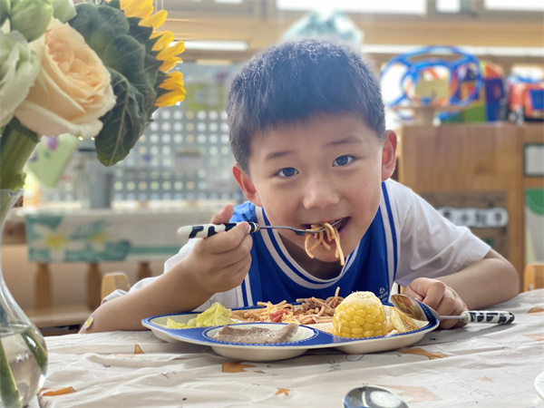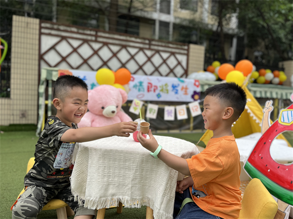 六一是孩子们的专属节日 用心聆听孩子内心声音 用心呵护种子生根发芽 点亮快乐童年 全新成长体验 今年的龙娃虎妞•快乐集市,立足幼儿兴趣及能有需缺进行游戏的迭代升级。邀请儿童全程参与,从游戏发布、场馆准备,到游戏护照,让儿童成为筹备发言人;卷入家长资源,邀请家长志愿者负责场馆组织路线引导安全防范;邀请中班家长携手同玩,感受不一样的六一,别样的童年!以“校园野餐、嗨玩游戏、疯狂造型”为三大主线、“花车游巡”特色为辅线,打造真正属于龙娃虎妞自己的快乐集市。 快乐part1:迎接领导慰问,祝福满满 6月1日,新北区龙虎塘街道办事处主任吴文博、副主任蒋铮、宣传统战委员曾艺、行政审批局局长高英走进龙虎塘街道中心幼儿园玲珑园区,为孩子们送上六一节日祝福。高亚媛园长向领导们介绍了本次六一活动的主题创意及创新之处。大家现场观摩了龙幼“六一集市”游戏现场,对六一氛围的整体打造、主题的场景设计、游戏的丰富体验给予了充分肯定。同时街道表示会继续助力家门口优质教育的发展,期待在共同努力下,孩子们健康快乐成长! 快乐part2:穿梭游戏集市,体验满满 各园区经过前期的精心挖掘和策划,从幼儿的感兴趣的六一活动入手,立足园区资源,从环境打造、课程推进,游戏体验等方面,立体多维打造儿童的六一集市。瞧!支着帐篷,挂着随风摇曳的气球,和小伙伴分享着清凉的西瓜汁、美味的三明治、爽口的水果捞……氛围感、幸福感满分;走进“嗨玩游戏”,与泡泡共舞、与水花同乐,与书相伴……感受属于夏日的凉爽与亲子共玩的美妙;疯狂造型,葫芦娃、小哪吒、大恐龙随时出没,花车巡游更是吸引了全园孩子和家长夹道欢迎观赏……51个场馆充分彰显“自由自主、乐智乐心”的课程理念,让孩子们尽情嬉戏、拥抱、释放和体验六一的欢乐,留下属于童年的美好独享回忆! 快乐part3:享用自助午餐,美味满满 班级里自助取餐的最美呈现也是各具特色,孩子们用心准备的餐具甚是精致可爱,食堂大厨搭配烹制精致丰盛的“六一自助餐”更是锦上添花,为幼儿的专属“六一”节日打造出浓浓的仪式感……孩子们享受着舌尖上的美味,津津有味地品尝着美食,一张张小脸蛋上洋溢着满满的幸福!孩子们悠闲地享受着属于他们的美好“食”光。