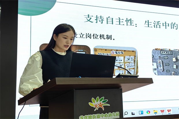师幼互动,作为评估幼儿园保教质量的关键指标,其重要性得到越来越多研究与实践的证实。良好的师幼互动对幼儿的发展有着重要的作用。2023年10月23日,龙虎塘街道中心幼儿园全体教师齐聚盘龙新园报告厅开展专题解读会,在聚焦主题、举一反三中更有效地落实保育教育评估指南,形成行之有效的策略分享。 聚焦要点,现场分享策略 教研前期,全体教师重温评估指南第26和28条考察要点,年级组内结合教研任务表单开展微教研,思考并汇总实施策略;教研现场,小中大12名级组代表现场分享基于年段核心经验了解下的年级组典型策略。在教研互动中,逐渐明晰“支持幼儿自主性”教师可以从创设支持自主性的环境、减少行动限制、提供选择机会、承担真实责任等方面去落实;在教研补充下,逐渐明确“幼儿的表达”要涵盖口语表达、绘画表达、符号表达、照片表达等方面。 聚焦话题,碰撞交流收获 汇报结束后,现场教师根据话题从行为、情绪、游戏、表达、认知、交往等角度阐述幼儿的自主性。同时结合实际案例,讲述如何培养小班自我服务、中班为他人服务、大班争做班级小主人的意识。聚焦“师幼互动”,从“研读——理解——落实”三步行动来真正落实考察要点在班级实际工作中的落实程度。通过主动参与、多向交流、充分互动,现场参与者深入思考及再研,让教研从经验逐步走向实证。 聚焦现场,总结引领提升 最后宋一叶副园长对本次进行活动做总结,她以“寻找一种视角、立足一个原则、坚持一种理念”三个“一”为关键词进行提升。强调评估指南的落实要能够理解文本,清晰落实理念的具体策略;强调教研活动要基于问题导向,解决实践问题;强调教研经验要进行成果梳理,促进成果转化。 师幼互动是老师的一种专业能力。我们需要不断地实践和内化,真正将师幼互动质量置于核心。期待龙幼教师能深刻理解师幼互动的真正含义,掌握支持儿童学习与发展的有效师幼互动策略,发现儿童,陪伴儿童更好地成长! 撰稿:高燕红 摄影:汪曙、李宇梦 审核:张静 |