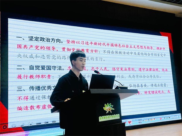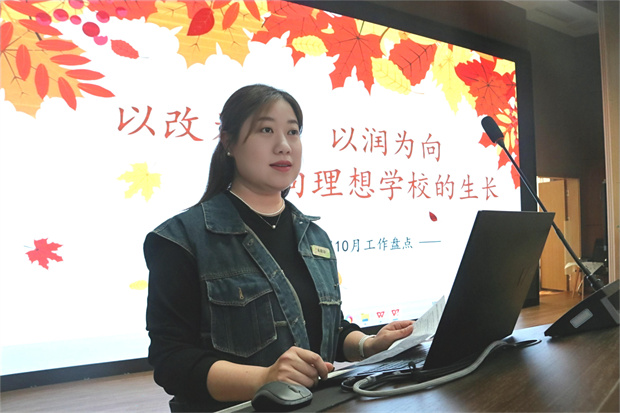 十月的阳光灿烂明媚,十月的微风清爽宜人,金秋十月,有孩子们拥抱大自然的好风光,更有教育拔节生长的声声捷报。2023年11月6日,龙虎塘街道中心幼儿园全体教职工开展10月工作盘点活动,共同细数奋力成长的十月。 回首采撷,共忆教育故事 本次的月盘点工作由朱晓玲组长主持,她分别从“学校管理与团队打造、幼儿成长与教师发展、资源保障与后勤服务”这三大版块带领龙幼人回顾了10月份的点滴足迹:综改现场推进会、管理领导力提升论坛、跟岗活动、团支书竞选,龙幼用智慧寻突破,以深化内涵助发展;专题讲座、乐享课程、园级家委会,龙幼以文化引航,用专业绘多元课程;话题研讨、后勤专项督查、安保培训,龙幼以精雕细琢,凸显品质常态……点点滴滴,见证着每一位龙幼人的生机勃发,聚力前行。 巡礼最美,致最美龙幼人 在最美巡礼环节,涌现了一批在日常行走中主动作为、贴地践行的闪耀之星。其中有善于观察、用心记录的博客星与课程星;有日复一日、扎实行走的能量骨干组;有追随幼儿发展,助推项目课程建设的朝气蓬勃组;有创意善思,走进幼儿的心灵的精彩蜕变组;还有勤劳务实、细致入微的品质后勤组。让我们向着闪耀之星,立足本真、砥砺前行,继续以向上的姿态行走在教育之路。 杏坛佳音,赴精彩绘本剧 绘本“慧”成长,童心“剧”绽放。本次杏坛故事的主人公是绘本剧《曾子杀猪》的主创团队——王志薇、高晨红和王誉洲三位老师,和大家分享了在绘本剧编排和参赛过程中发生的精彩故事。王志薇老师从“三思而后行”到“三行而后思”的角度与大家分享细致做事的思维路径;高晨红老师和王誉洲老师则分别从幕后和台前不同的角度分享了参与本次绘本剧比赛的所行所思所获!最后全体龙幼人共同观看了本次绘本剧的参赛作品,用掌声表达了对他们的肯定和赞扬! 总结提升,朝向幼儿成长 之后,潘雯雯主任为本月盘点活动进行了引领与提升。她以学前教育所面临的诸多问题和挑战为切入点,以《聚焦科学照料,为幼儿成长加码》为题,阐述了当前保教结合有法可依的现状,明确保教共育的必要性,形成全程、全员、全域的教育新生态理念。她指出聚焦科学照料,应五育并举,关注孩子的全面发展;应精进生活技能,帮助幼儿养成良好的生活习惯和健康文明的生活方式;应抓住幼儿能力发展和习惯养成的关键期,促进儿童成长内驱力。最后期待每个龙幼人都能将理论落地实践,将润泽文化在我们日常工作的每一个环节中做深、做细、做实,共同用文化自觉,担当起“办人民满意教育”的共同使命。 活动最后,由党支部组织委员潘雯雯同志发起,由团支部书记周雁南老师带领全体教师认真学习了《新时代幼儿园教师职业行为十项准则》等文件精神,进一步明确了师德师风建设的相关要求,随后,全体教职员工认真签署了《师德承诺书》,坚定了履行教师职业道德的信念,让师德师风建设内化于心,外化于行。 金秋十月,迷人的不仅有身边的丹桂飘香,还有身边那些最美的人儿和最真的事儿。期待每个龙幼人都可以带着对教育的初心和使命,洋溢着蓬勃的创造力和精神力量,在教育旅程中寻找生命的“诗和远方”,遇见更灵动的孩子、更优秀的自己!