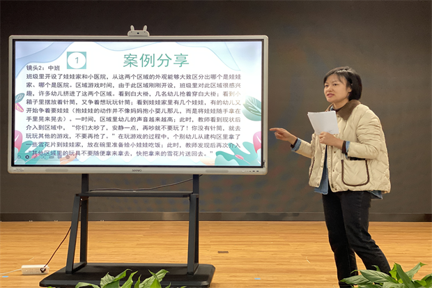 腹有诗书气自华,最是书香能致远。为进一步激活教师发展活力,满足不同发展层次教师的专业成长需求,提升教师支持性环境打造的能力,2023年11月19日,龙虎塘街道中心幼儿园结合《0-8岁儿童学习环境的创设》部分章节,重点针对角色区、益智区、科学区进行了读书教研,为后续的分层岗位练兵拉开了帷幕。 品读章节,自主思考:活动前期,分年段围绕不同的区域进行了相应读书内容的推荐,结合班级区域创设的实际情况进行了前置的思考和学习。活动现场,小中大各年段的老师们进行了现场的学习和分享。小班教师聚焦角色区聚焦《幼儿园角色区创建步骤和组织策略》、《“寻”幼儿园区域游戏之角色区的“出路”》等三段文章,中班教师着眼益智区结合《幼儿园里的“三研究”玩具篇》部分内容及《益智区材料投放、管理及活动开展》进行思考,大班教师就《0-8岁儿童学习环境的创设》一书中科学区的创设进行品读。教师们伴随着柔和的音乐在书海遨游,并将自己的思考及时记录,积极发表感悟。 错层滚动,智慧流转:结合学习收获感悟,各会场教师们按照潜力期、发展期、成长期分为三组聚焦话题进行现场研讨。结合前期各班汇总的三个区域游戏创设表,教师们代入书中的理论知识重新审视本班区域创设的亮点与不足,共同探讨该区域材料投放、环境创设、能力关注点的优化路径,并汇总形成教研海报,并推荐代表集中分享。过程中,成熟期的教师分别分到三个层次,帮助进行思路的梳理及策略的提升,在各层次发挥骨干教师的引领。三个层次教师的集中交流,体现出了各自智慧思考,相信各班在后期调整中定能在看见幼儿、理解幼儿的同时及时给予有效支持,这样的组织方式形成了差异资源的流转,达成了优质经验的错层滚动。 总结提升,引领路径:活动最后各会场由成熟期教师和教学负责人进行总结提升,她们对不同区域分别指引了调整方向。角色区应从幼儿生活经验与兴趣点出发创设游戏,增强代入感,关注小班幼儿在游戏中与材料、同伴的互动,培养其语言表达、社会适应及人际交往能力。益智区应重点聚焦幼儿的观察力、问题解决能力、思维力、学习品质与习惯进行培养。科学区需对照《科学领域核心经验及区域打造标准解读》的要求,以关键经验为重难点,从观察实验、科学思考、表达交流和设计制作等方面培养幼儿的多元能力。 从学习——教研——练兵,这是品质打磨的历程,更是经验积淀的过程。龙幼人将一如既往,以书香温润心灵,将学习化为实践,在朝向未来理想学习的征途中,赋予儿童更美好的童年。 撰稿:王冬玲 摄影:四园区教师 审核:张静 |