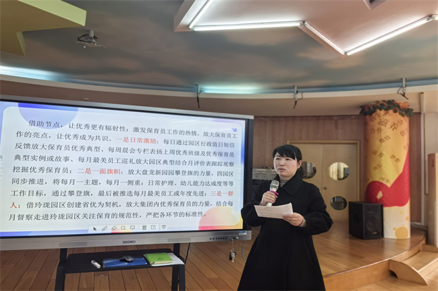 为加强保育队伍建设,使保育工作更加科学化、规范化、精细化,进一步提高保育老师的专业素养,提高她们在幼儿一日活动中的教育意识和专业水平。2024年3月11日,龙虎塘街道幼教集团开展了主题为“幼有所育,规范先行”的学习培训活动。 活动伊始,全体保育员一起观看视频,互动交流感受,一起讨论保育员在一日工作中的可为与不可为,重温师德规范。全体保育老师且听,且思,且行,清晰认识到树立良好的师德师风形象的重要性。接着,王彩红副主任围绕红旗攀登墙、每月自理能力评比、省优督查等新学期重点工作进行了计划交流。孙艳、戴佳媛副主任分别从午睡看护、一日规范工作流程、拎被褥的规范要求以及各处室的消毒规范,进行了制度重温和规范强调,让保育老师们明确工作要求,强化责任感。最后,潘雯雯主任对本次活动进行了总结提升,再次强调全体保育老师要“拥有底线意识,不踩红线;拥有专业意识,精进业务;拥有安全意识,增强责任”,将爱心与责任放在心上,落实在行动上。 通过此次培训,全体保育老师对加强师德师风建设、学校安全工作和工作立身之本有了更加深刻的认识,今后,让我们一起立足本职岗位,不忘初心,为孩子们提供更加优质、专业的保育服务。 撰稿:蒋丹昀 摄影:戴佳媛 审核:王彩红 |