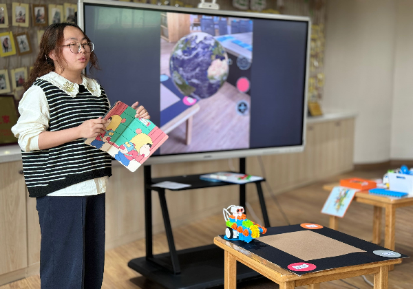 为深入贯彻落实教育数字化运用,不断提升师幼数字素养,持续深化信息技术与教育教学的融合创新,积极推进智慧教育建设,我园持续开展了“数字化学习课堂教学”评比暨岗位练兵活动。 积极准备,赛出风采:根据自主申报,我们前期邀请了专业的幼儿编程导师对老师们进行了相关技术培训,为老师们做好技术支持。4月24日,8位教师进行了第一轮评比,围绕“小鲸造编程小车”、“STEM编程套装”等幼儿编程材料进行数字化课堂教学设计,并进行8分钟的模拟演课和教学技术演示,最终有4位老师脱颖而出,并于5月15日进行了第二轮现场教学展示评比。现场展示中,老师们通过多层次的互动来引导幼儿探索编程的奥秘,用多种技术手段和工具来解决传统教学中的重难点问题,给大家呈现了精彩的数字化教学课堂。 互动研讨,智慧碰撞:随后,执教老师们结合自己的教案设计和现场展示进行自我反思。陆琰柯老师针对创新数字化课堂提出了自己的想法。季雪芬主任和戴佳媛副主任也肯定了4位老师的精心准备,并提出优化建议,希望老师们在教学的设计、环节的创设上面向全体幼儿,注意活动的重难点是否符合幼儿现阶段的经验水平,在信息技术运用上进一步突显与教学的融合性。 总结提升,高位引领:最后,吴紫阳副园长肯定了老师们对信息技术运用于教学的积极探索,能始终基于儿童立场进行活动设计,教学目标符合新课程标准,可操作、可检测,体现以幼儿发展为中心;同时指出一节优秀的信息技术课堂需要教师互动方式更多元,关注幼儿学习过程及经验获得,要能通过可操作性强的技术应用优势来向突破。 有趣有料、创新思维的智趣课堂是我们教育信息化建设追求的目标,相信老师们在一次次信息交融探索中定能交付儿童一把把智慧之钥,最终实现科技赋能教育,智慧创享未来。 撰稿:李嘉涵 摄影:盘龙新园大班教师 审核:张静