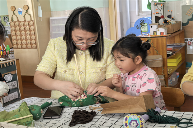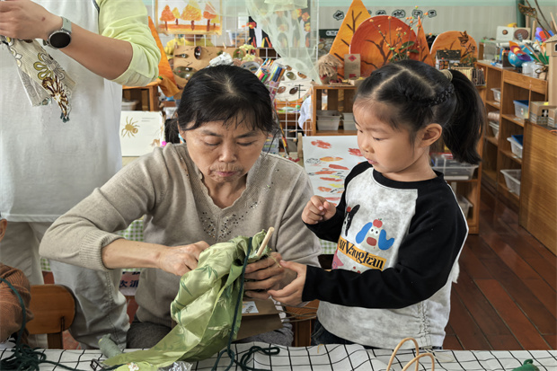 秋风清,秋月明,又到一年重阳时。为弘扬中华民族尊老敬老的传统美德,进一步关爱退休教师的生活,2024年10月11日,龙虎塘街道幼教集团邀请退休园长盛凤秀、赵小芳等退休老师重返学校,共同欢度重阳佳节。 上午10点,老教师们齐聚盘龙园区,彼此寒暄,欢喜之情溢于言表。高园长代表学校向老教师们致以亲切的节日问候。老教师们走在曾经工作过的地方,一起追溯往昔、谈笑风生,为学校的蓬勃发展发出一声声赞叹。 月亮1班的孩子们为退休老教师们送上了精美的贺卡礼物,并邀请奶奶们一起制作艾草锤,体验手工DIY的乐趣。制作完成后,孩子们还为奶奶捶捶背,在欢声笑语中传递温暖与关怀。 退休教师们纷纷感谢学校对他们退休生活的关怀,让他们感受到学校大家庭的温馨,并表示今后将继续关注学校发展。学校也永远和退休教师的心紧密相连,衷心祝福这些为教育事业付出毕生心血的老教师们青松不老、幸福安康!